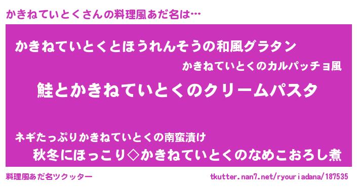 | 欧米人風あだ名 | 『ダニエルかきねていとく』 |