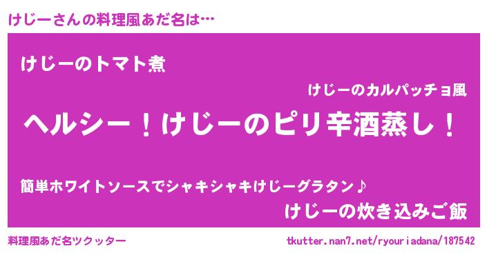 | 女子向けラノベタイトル風あだ名 | 『闇のけじー』『けじー夫妻のなれそめ』 |