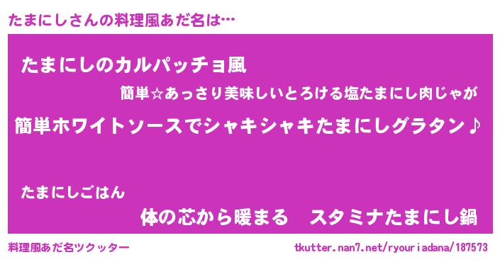 | 胡散臭い通販商品みたいなあだ名 | 『全米が絶賛したサプリメント…その名も「たまにし」』 |