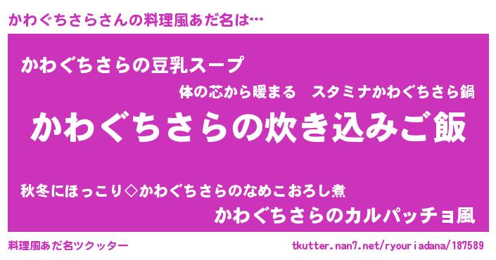 | 意味不明あだ名 | 『とにかく怪しいかわぐちさら』 |