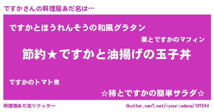 | 男性向けラノベタイトル風あだ名 | 『ですかの憂鬱』『はたらくですかさま!』 |