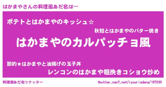 | 男性向けラノベタイトル風あだ名 | 『魔弾の王とはかまや』『はかまやの憂鬱』 |