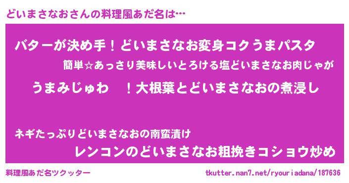 | 男性向けラノベタイトル風あだ名 | 『うちの娘の為ならば、俺はもしかしたらどいまさなおも倒せるかもしれない。』 |