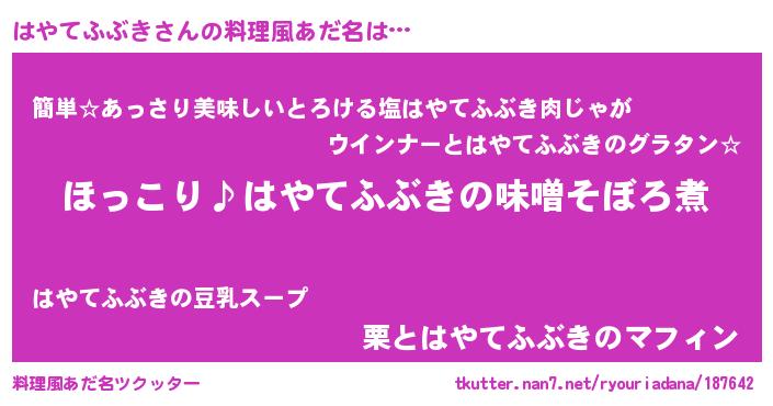 | 胡散臭い通販商品みたいなあだ名 | 『必ず成功する霊験あらたかなお札…その名も「はやてふぶき」』 |