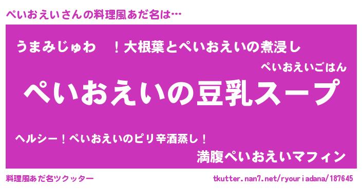 | 男性向けラノベタイトル風あだ名 | 『ダンジョンにぺいおえいを求めるのは間違っているだろうか』 |