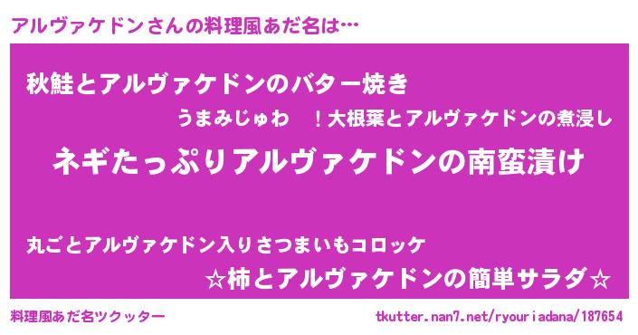 | 男性向けラノベタイトル風あだ名 | 『アルヴァケドンアートオンライン』 |