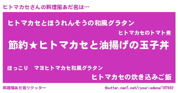 | ヒーロー風カッコイイあだ名 | 『スーパーヒトマカセ』『仮面ヒトダー』 |