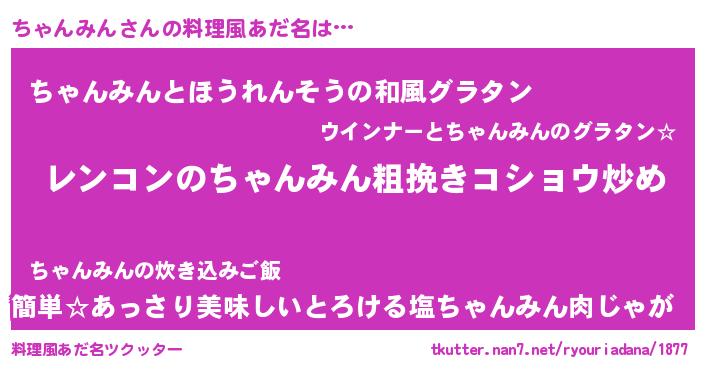 | 意味不明あだ名 | 『自称ちゃんみん』『ニラ科ちゃんみん属』 |