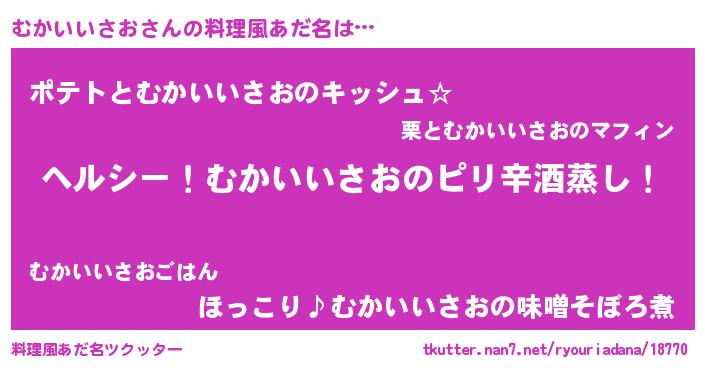| 男性向けラノベタイトル風あだ名 | 『Re:むかいいさおから始める異世界生活』 |