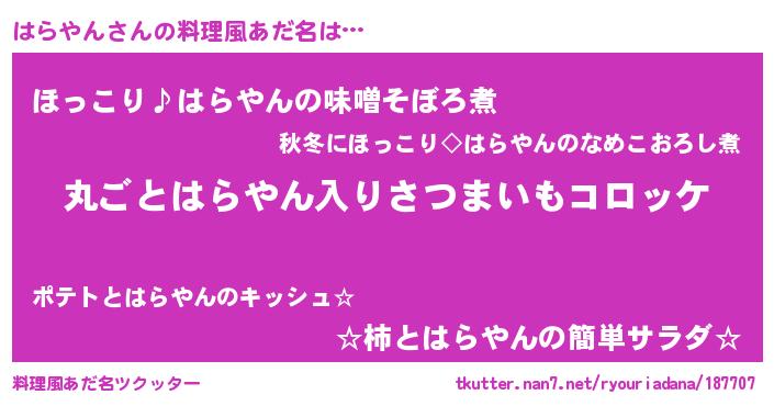 | ヘコむあだ名 | 『はらもー』『はらを』『なまこ酢』 |