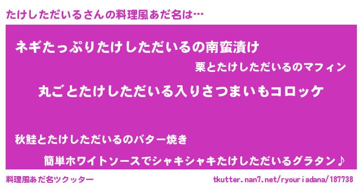 | 意味不明あだ名 | 『住所不定無職たけしただいる(47歳)』 |