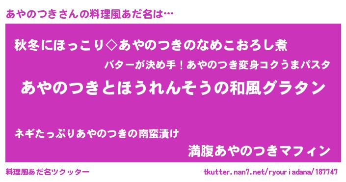 | ヘコむあだ名 | 『あやのつき(笑)』『あやっふぃ~』 |