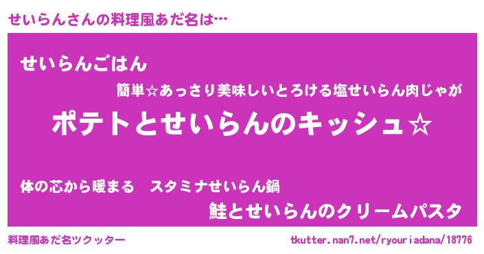 | 女子向けラノベタイトル風あだ名 | 『せいらんの卵を拾いまして』 |