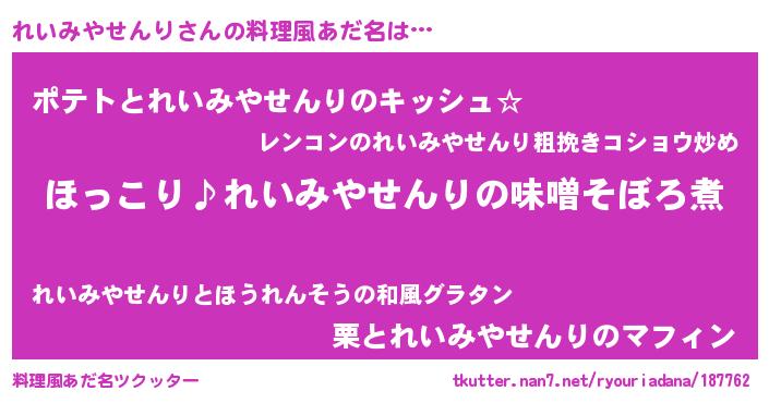 | 男性向けラノベタイトル風あだ名 | 『れいみやせんりの憂鬱』 |