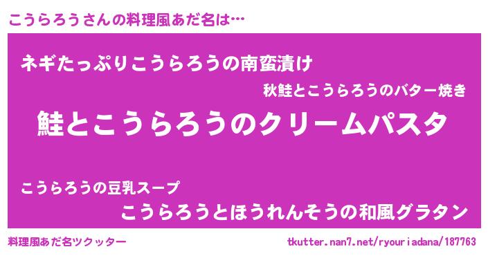 | 男性向けラノベタイトル風あだ名 | 『ノーゲーム・ノーコウラロウ』 |