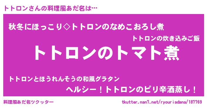 | ヘコむあだ名 | 『つくし』『トトっぺ』『トトにゅー』 |