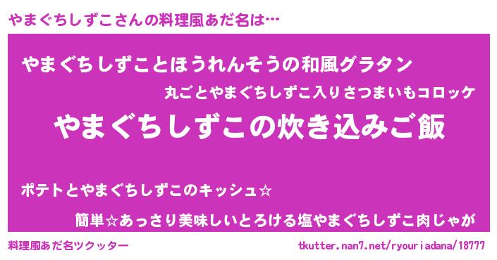 | ヘコむあだ名 | 『やまぐちしずこ(笑)』『やまぷりん』 |