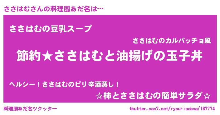 | 意味不明あだ名 | 『ペロリンささはむ』『自称ささはむ』 |