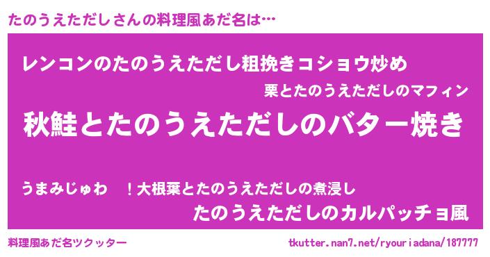 | 意味不明あだ名 | 『永久保存たのうえただし』 |
