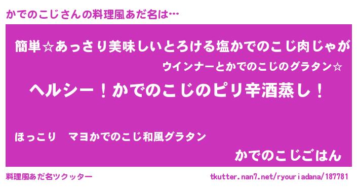 | ヘコむあだ名 | 『かでのこじ(苦笑)』『酢こんぶ』 |
