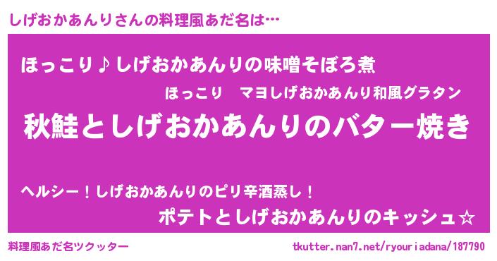 | 意味不明あだ名 | 『永久保存しげおかあんり』 |