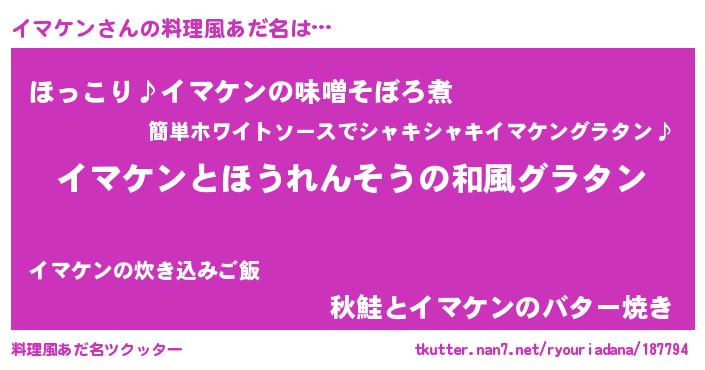 | 意味不明あだ名 | 『なめこ科イマケン属』『自称イマケン』 |