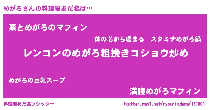 | 意味不明あだ名 | 『自称めがろ』『永久保存めがろ』 |