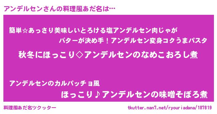 | 胡散臭い通販商品みたいなあだ名 | 『前代未聞の健康食品…その名も「アンデルセン」』 |