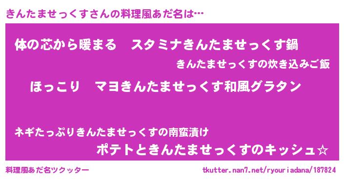 | 意味不明あだ名 | 『住所不定無職きんたませっくす(1歳)』 |