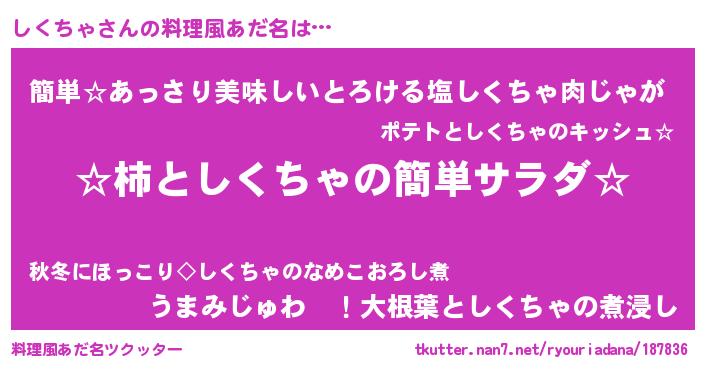 | 胡散臭い通販商品みたいなあだ名 | 『絶対に幸福をもたらす水素水…その名も「しくちゃ」』 |