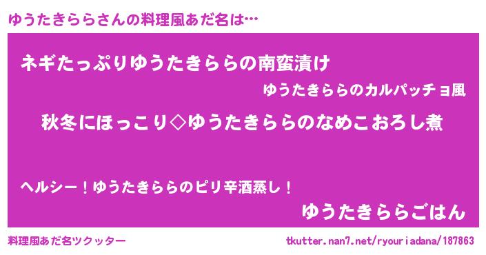 | 男性向けラノベタイトル風あだ名 | 『ゆうたきららに滅ぼされるだけの簡単なお仕事です』 |