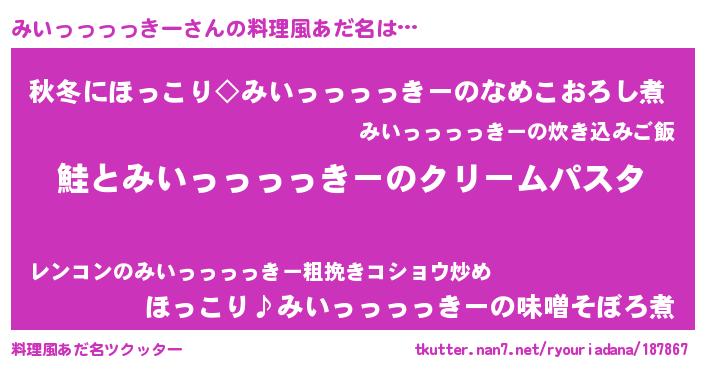 | ヒーロー風カッコイイあだ名 | 『慈愛の使者みいっっっっきー』 |