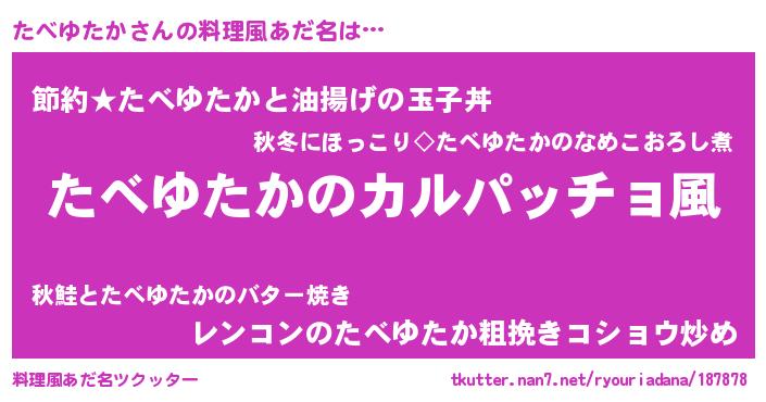 | 意味不明あだ名 | 『住所不定無職たべゆたか(13歳)』 |