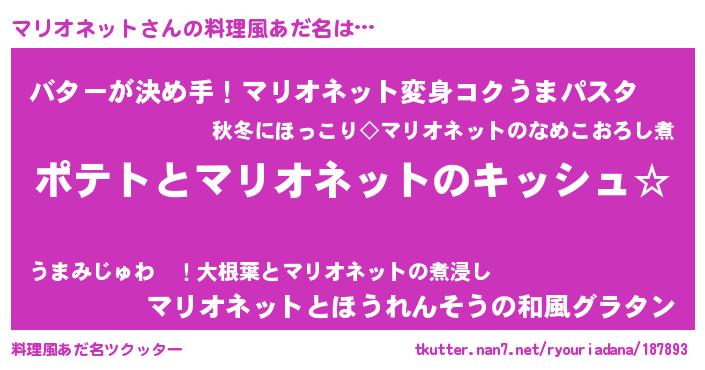| 胡散臭い通販商品みたいなあだ名 | 『伝統あるサプリメント…その名も「マリオネット」』 |