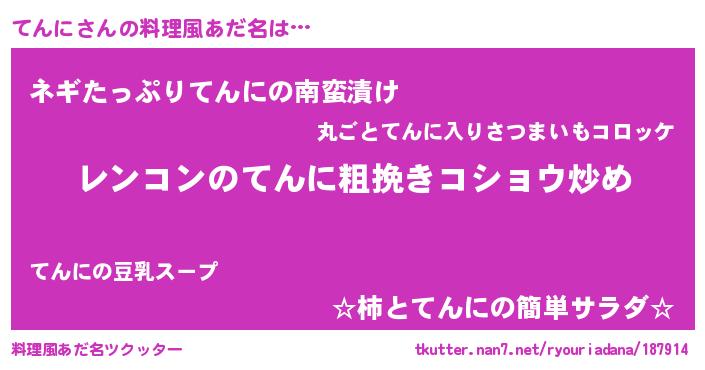| 意味不明あだ名 | 『自称てんに』『ペロリンてんに』 |