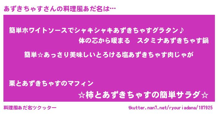| 胡散臭い通販商品みたいなあだ名 | 『前代未聞の水素水…その名も「あずきちゃす」』 |