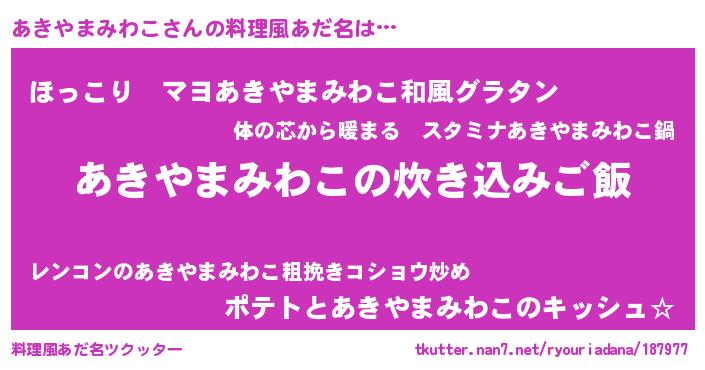 | 意味不明あだ名 | 『住所不定無職あきやまみわこ(74歳)』 |