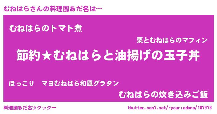 | 男性向けラノベタイトル風あだ名 | 『むねはらの憂鬱』 |