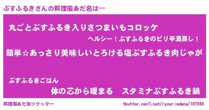 | ヘコむあだ名 | 『ぶすふるき(笑)』『つくし』 |