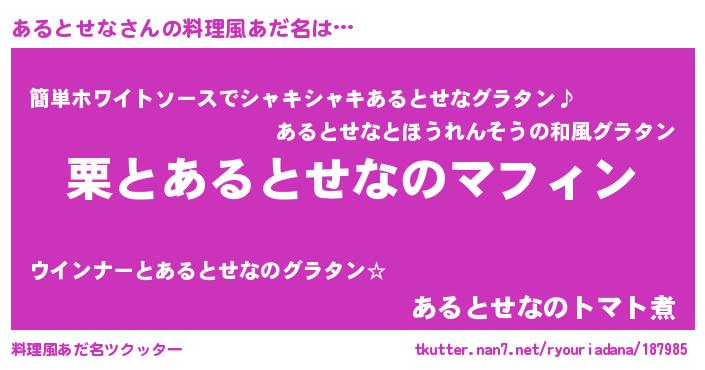 | 意味不明あだ名 | 『とにかく怪しいあるとせな』 |