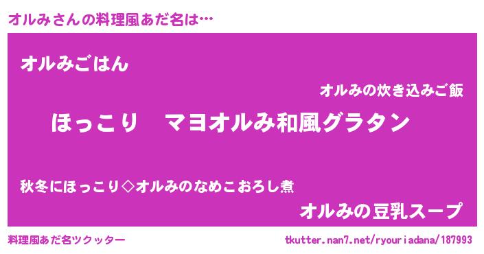 | 男性向けラノベタイトル風あだ名 | 『この素晴らしい世界にオルみを!』 |