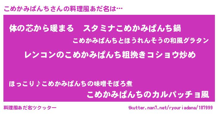 | ヒーロー風カッコイイあだ名 | 『超時空戦士コメカミパンチ』 |