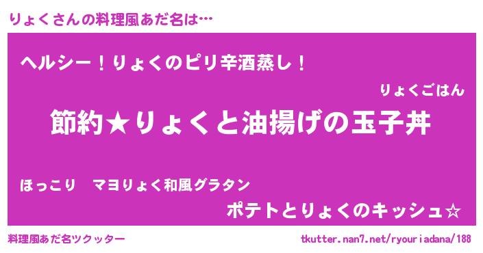 | 男性向けラノベタイトル風あだ名 | 『りょくの憂鬱』『リョクスレイヤー』 |