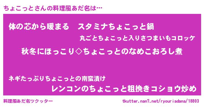 | ヘコむあだ名 | 『なまこ酢』『ちょっふぃ~』 |