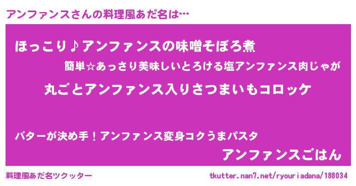 | ヘコむあだ名 | 『アンもー』『アンファンス(爆)』 |