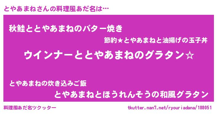 | 欧米人風あだ名 | 『とやあまねクリステル』 |
