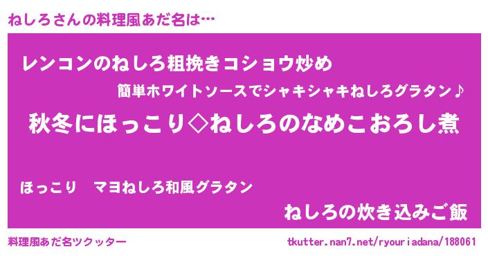 | 男性向けラノベタイトル風あだ名 | 『ねしろに滅ぼされるだけの簡単なお仕事です』 |