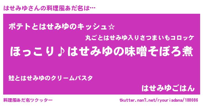 | 男性向けラノベタイトル風あだ名 | 『はせみゆの憂鬱』『ハセミユスレイヤー』 |