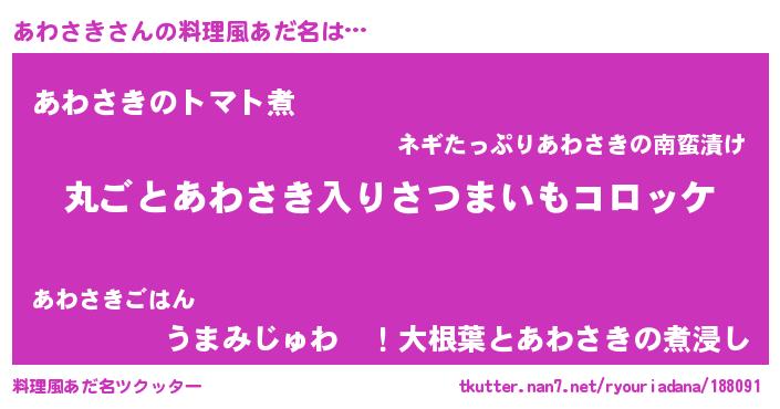 | 意味不明あだ名 | 『住所不定無職あわさき(84歳)』 |