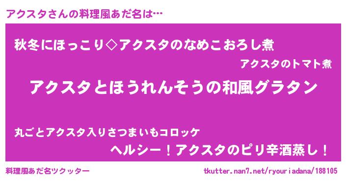 | 女子向けラノベタイトル風あだ名 | 『アクスタの玉の輿計画!』 |